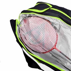 The Dunlop Elite Tournament Thermo Bag is an ultra functional racquet bag with plenty of room for racquets and gear to keep you prepared for your match and training. This bag has two main compartments to hold up to 6 badminton racquets. One of the main compartments features Dunlop’s Thermo Insulation to protect your frames and strings from the elements. Separate shoe compartment keeps your wet gear or shoes separated and organized and features ventilation holes to let your gear breathe.