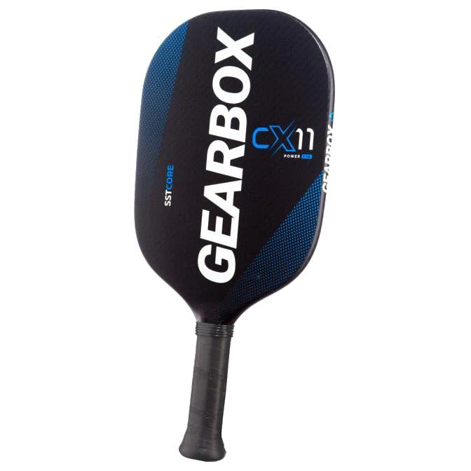 The Gearbox CX11Q Quad Power Pickleball Paddle (Blue) (8.5 oz.) has more pop, is agile and excellent for players with a more aggressive game style or those wanting more power behind their swing.