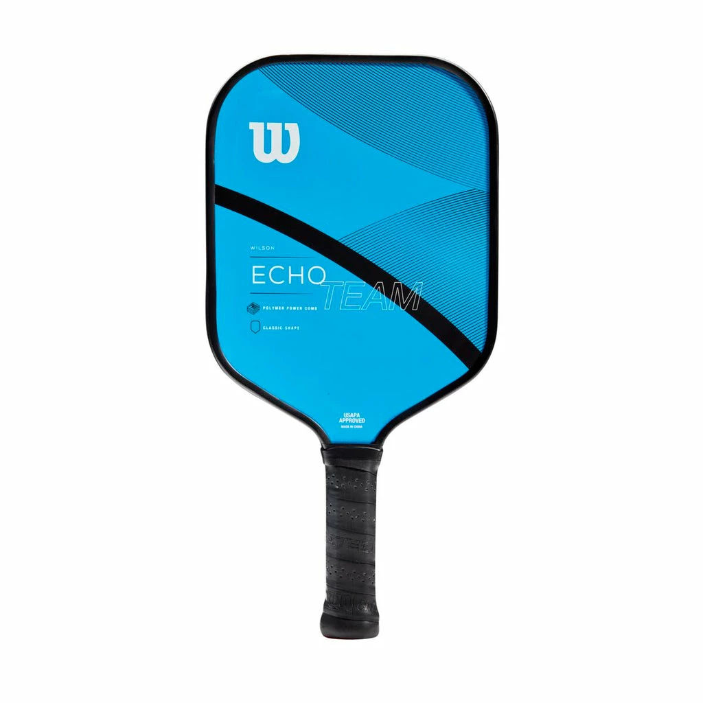 Equipped with a longer handle to more comfortably accommodate two-handed backhands, the Wilson Echo Team supplies a nice mix of power, control and feel. Its classic shape offers an element of flexibility for both singles and doubles play, while its polypropylene honeycomb core softens the feel upon contact with the ball. USAPA-approved for competitive play, the Wilson Echo Team complements solid performance with vibrant design for players in the market for a new paddle.